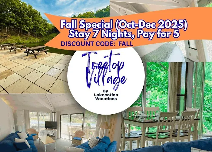 Máquina de café/chá, refrigerador e forno são comodidades padrão em cozinha totalmente equipada. O aeroporto mais próximo da pousada Treehouse Treetop Village105-3Bed3Bapools-8Pp é de Fort Leonard Wood, localizado a 100 km.